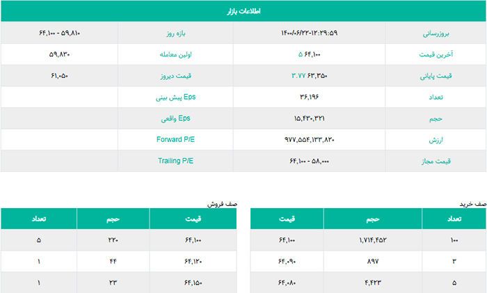- قدرت خریداران در ده روز معاملاتی گذشته 11557.83 برابر فروشندگان بوده است.