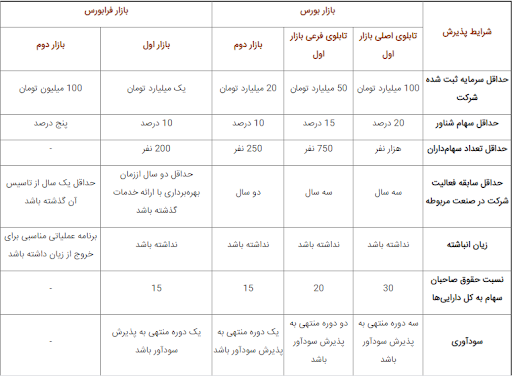 از شهریور ماه سال 1381 بازار بورس تهران تصمیم گرفت معاملات سهام شرکت های نقد شونده و غیر نقد شونده را در تابلوهای مختلفی به نمایش بگذارد.
